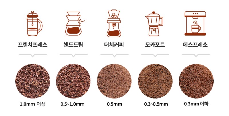 커피 입자를 크게하거나 작게하는 것에 따라 맛의 차이가 크지요.