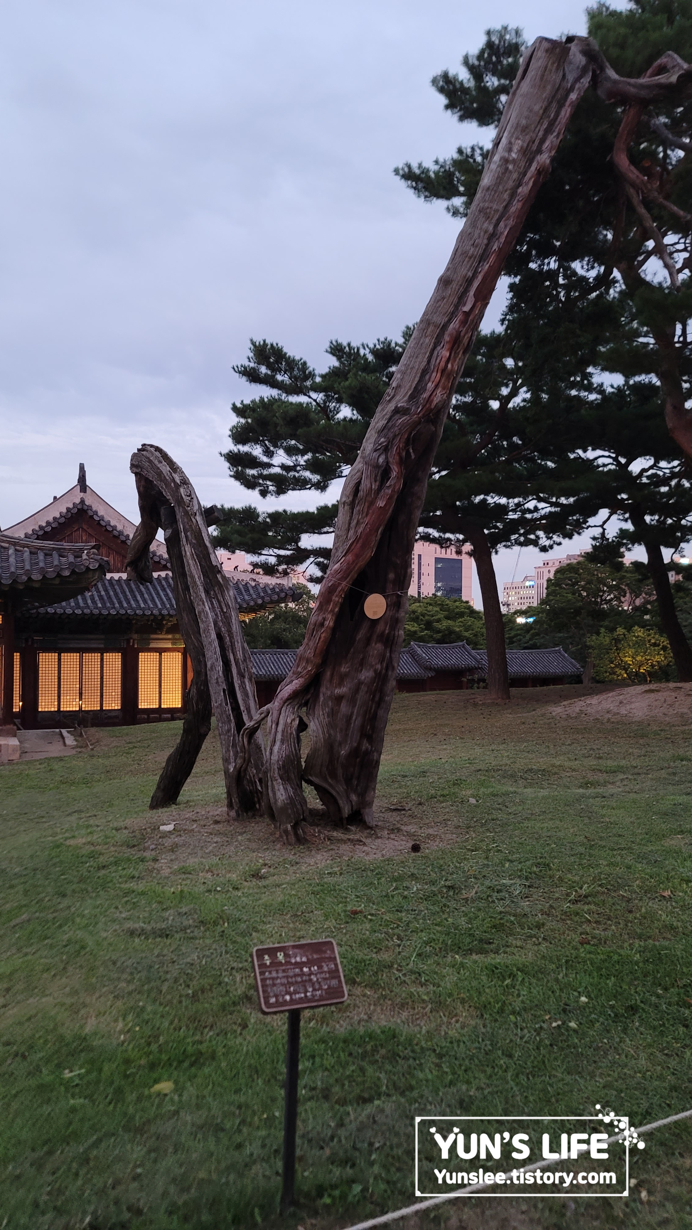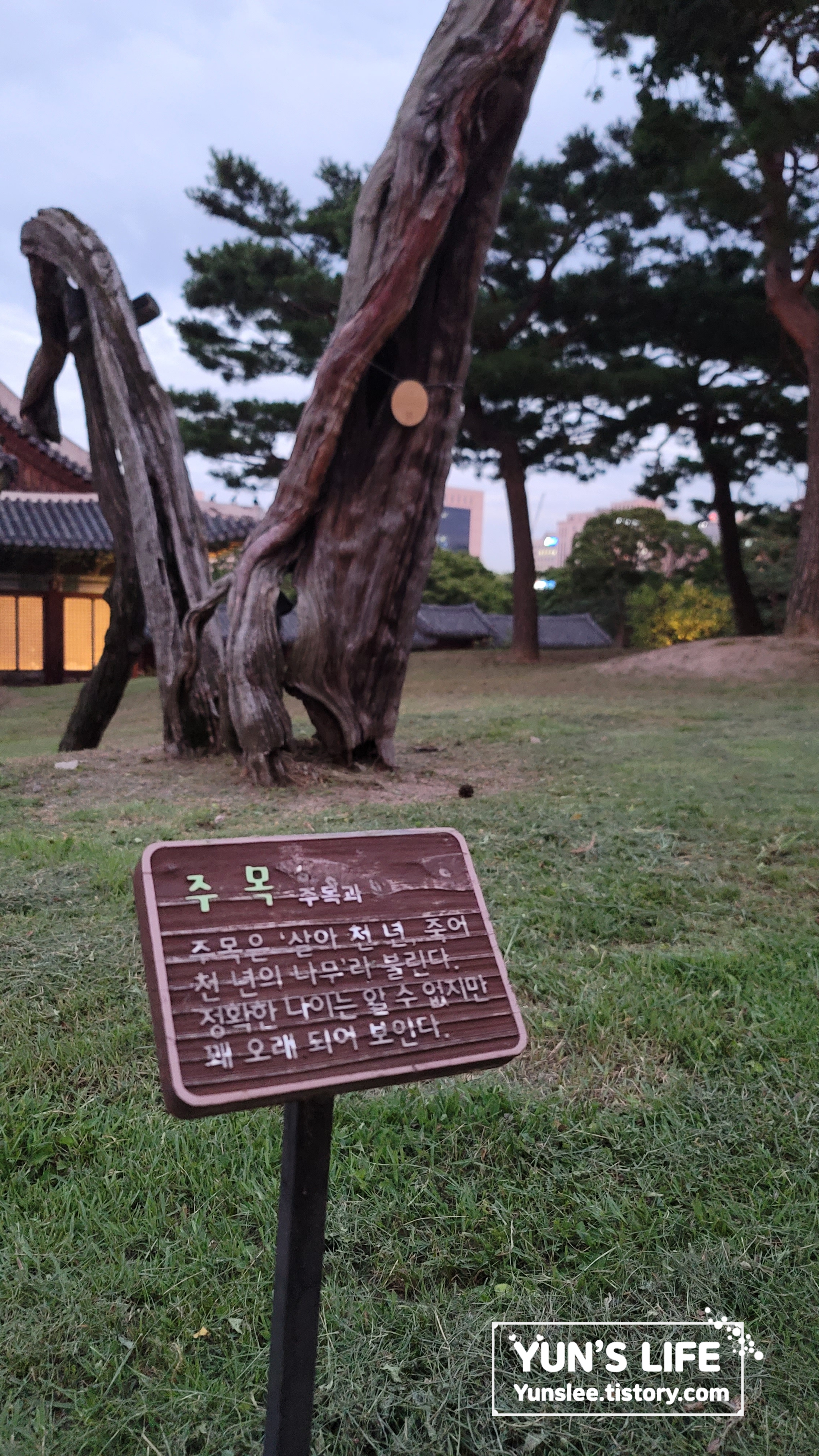문정전을 뒷배경으로 한 '주목'