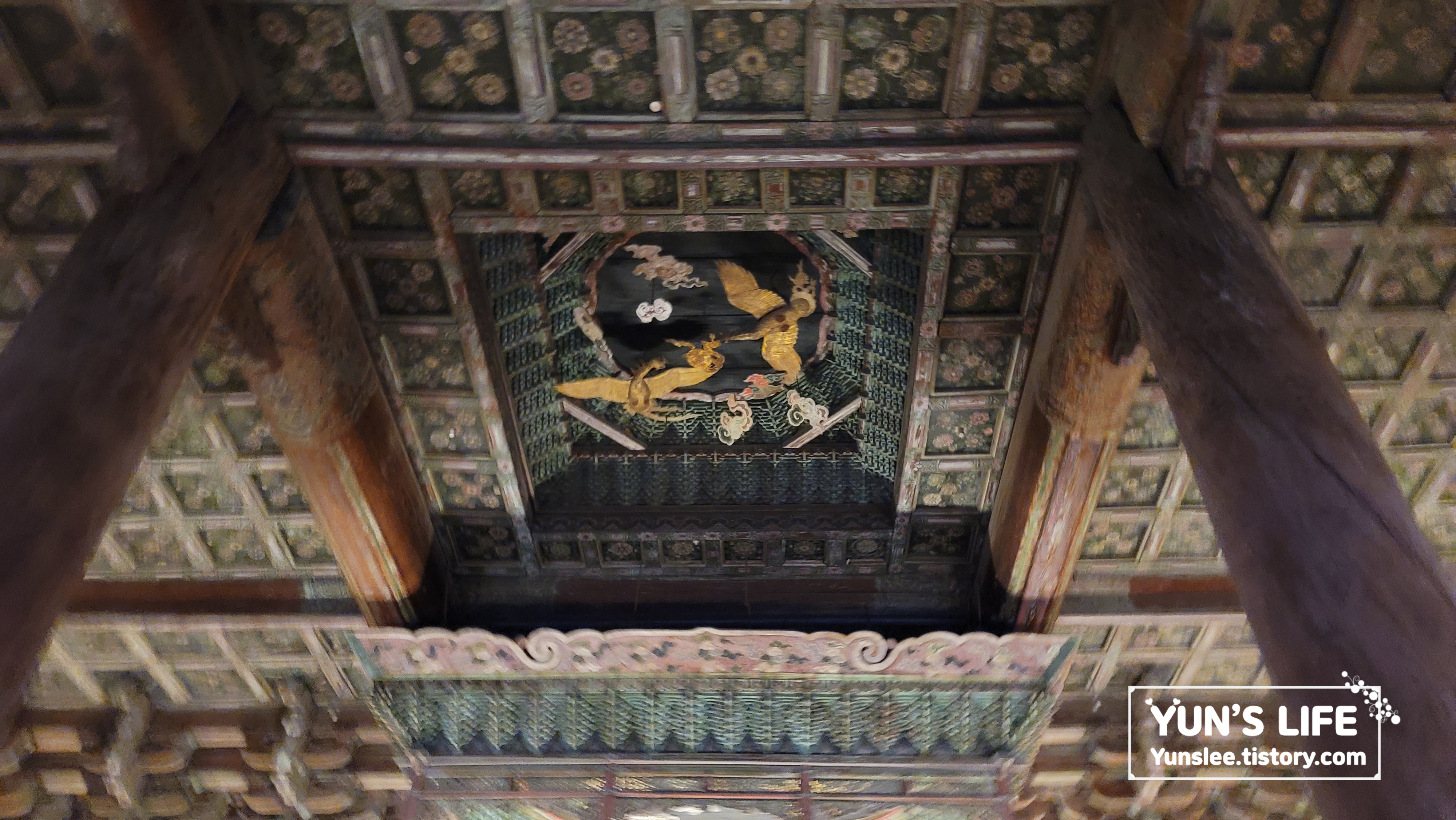 명정전 내부 천장에는 봉황의 모습으로 꾸며져 있습니다.