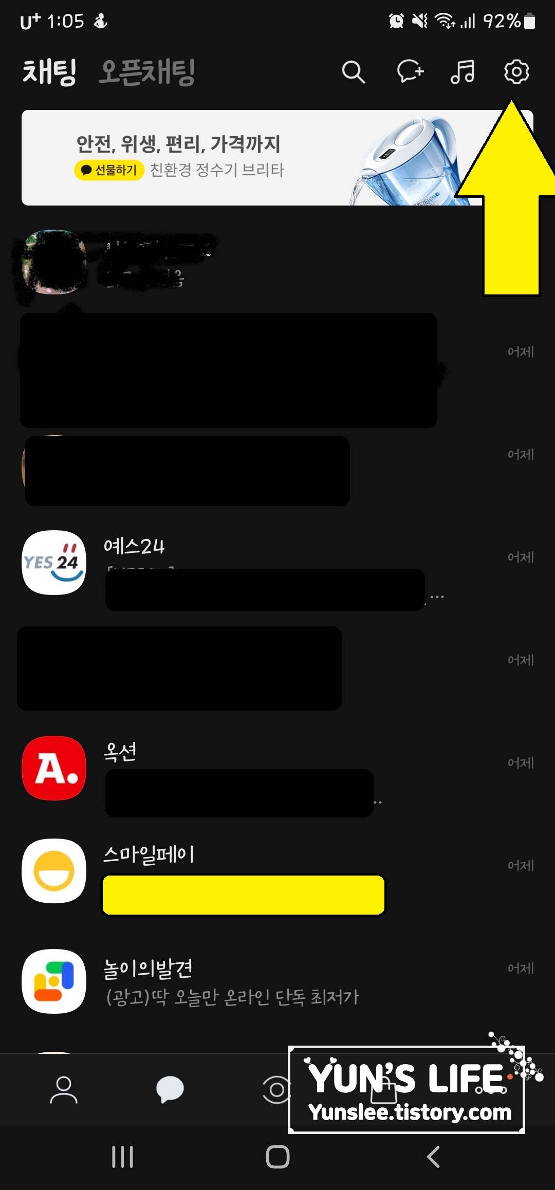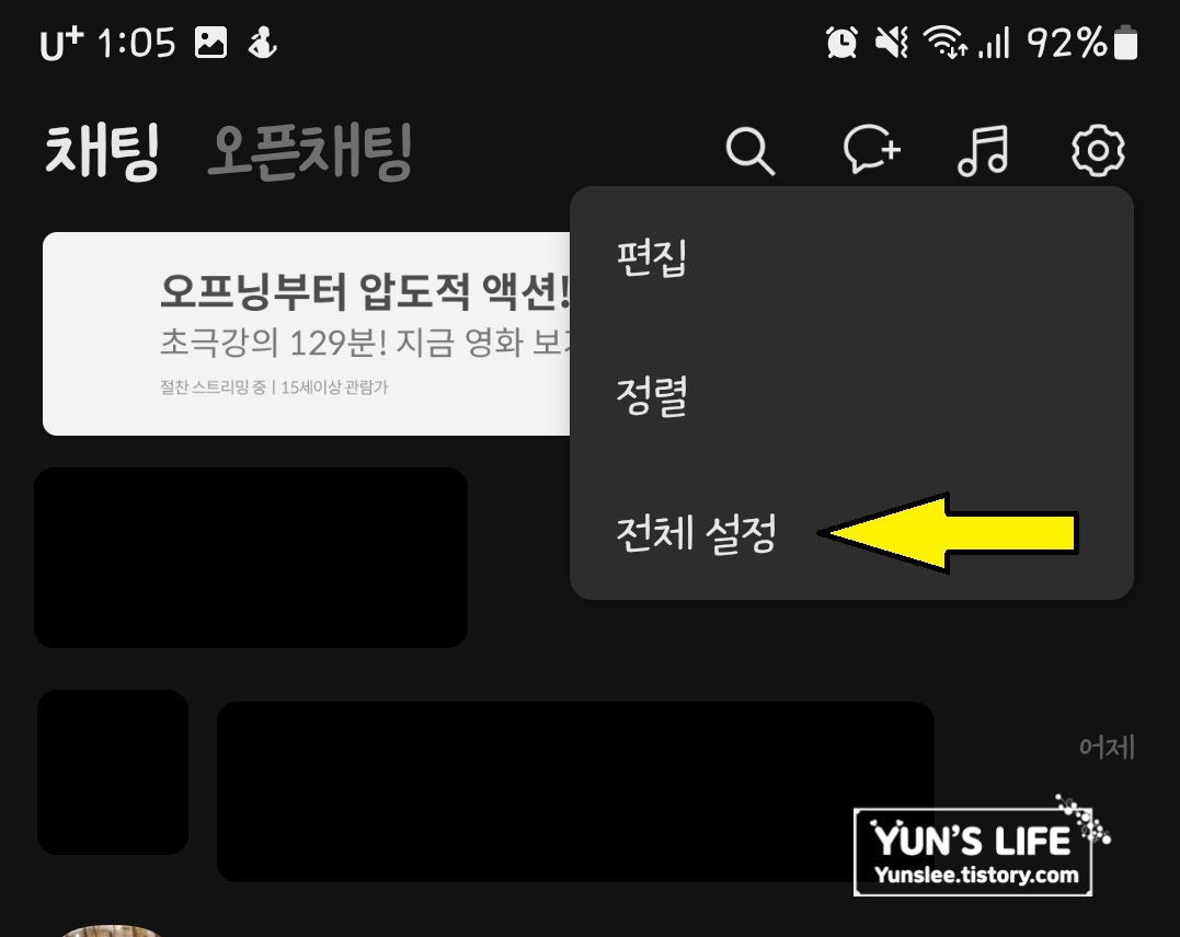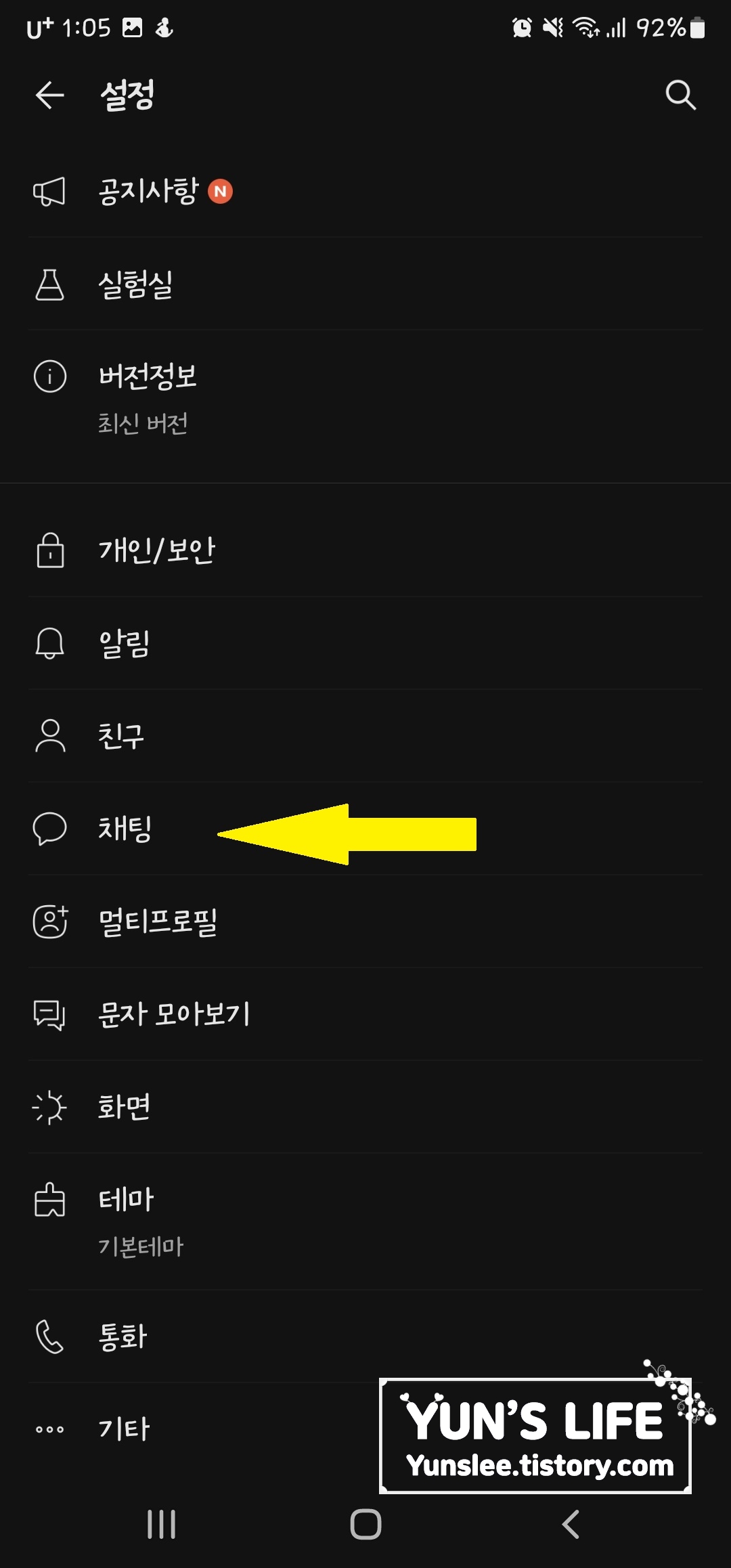 2. 설정에 보시면 '채팅' 있죠? 클릭하세요^^