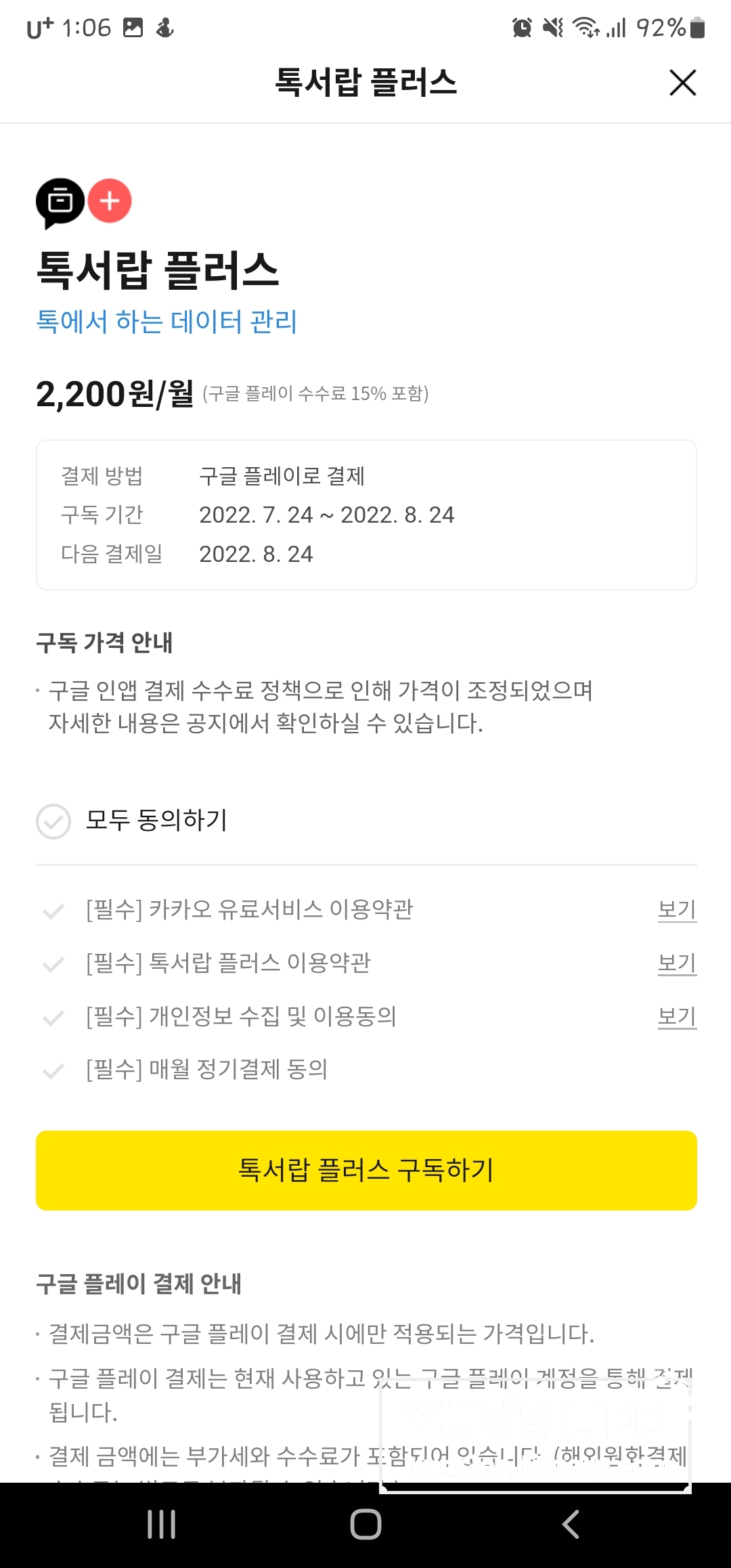 아래처럼 톡서랍 플러스 가입하라고 권유합니다.