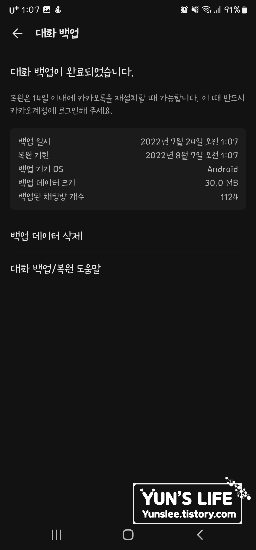 대화 백업이 완료되었습니다.