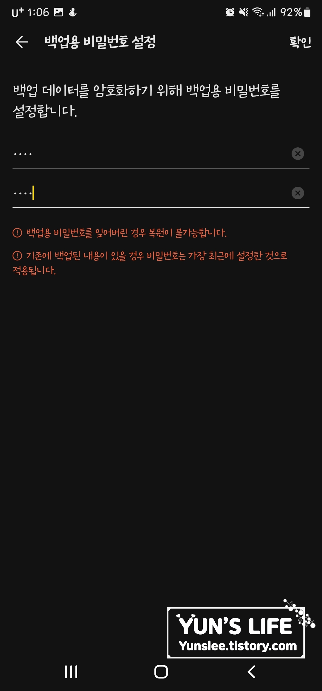백업할때 비번은 우리가 4자리로